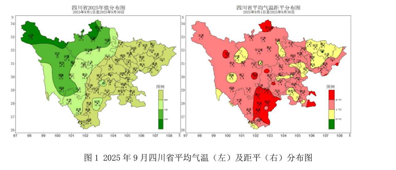 10月7日,红星新闻记者从四川省气候中心了解到,刚刚过去的9月,四川全省平均气温偏高,位列历史同期第4高位。9月全省平均气温21.4℃,偏高1.4℃,排历史同期第4高位。盆地和攀西地区大部 20~26℃,古蔺站25.9℃为全省最高;川西高原北部在15℃以下,石渠站7.5℃为全省最低。全省大部地区平均气温较常年同期偏高1℃以上,其中攀西地区东部等局部地区偏高2~3℃。