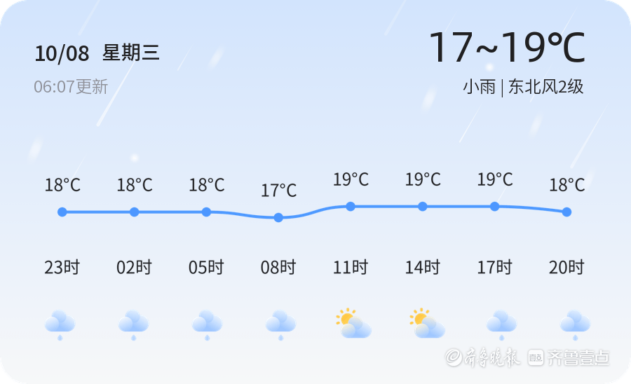 今天是10月8日,农历八月十七,也是二十四节气中的寒露节气。今日聊城迎来小雨天气,气温在17℃至19℃之间,东北风2级,空气湿度高达92%,PM2.5浓度为49,空气质量良好。市民出行时建议携带雨具,注意防寒保暖。