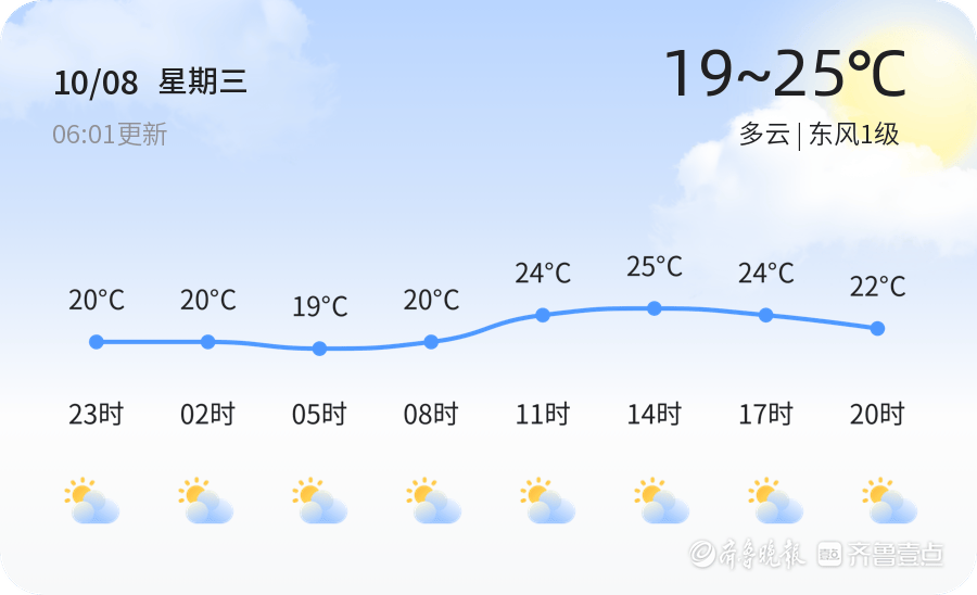 今天是10月8日,星期三,农历八月十七,枣庄市迎来寒露节气。今日天气多云,东风1级,气温介于19℃至25℃之间,空气湿度为89%,PM2.5指数为51,属于良好水平,适宜户外活动。市民出行时可适当减少衣物,注意防晒保湿。寒露是二十四节气之一,标志着天气逐渐转凉,昼夜温差加大,市民需及时添衣保暖,预防感冒。此外,寒露时节也是赏菊的好时机,市民可前往公园或花卉展览感受秋日美景。未来三天,枣庄市天气以多云为主,气温逐步回升,预计最高温度可达27℃,最低温度为18℃。市民需关注天气变化,适时增减衣物,保持身体健康。今日空气质量良好,市民可放心进行户外运动,享受秋日的阳光与清新的空气。未来一周,枣庄市天气整体平稳,多云为主,偶有小雨天气,市民需随身携带雨具,以备不时之需。总体来看,本周天气适宜出行,市民可合理安排户外活动,享受秋日的美好时光。
