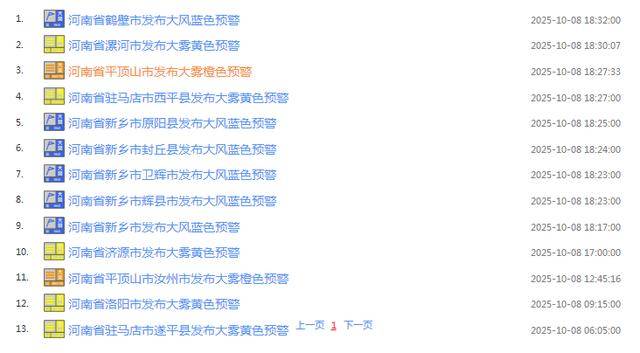 据了解,截至10月8日18:40,河南13条预警信息生效中!