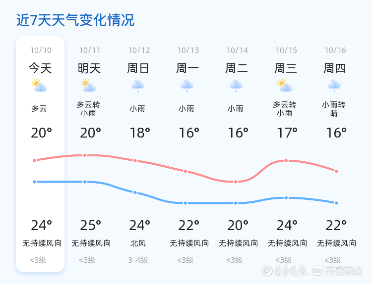 明天是10月11日,星期六,日照市天气仍为多云转小雨,气温与今天相比略有上升,最高气温将达到25℃,最低气温为20℃。降雨概率较高,建议市民提前做好防雨准备。