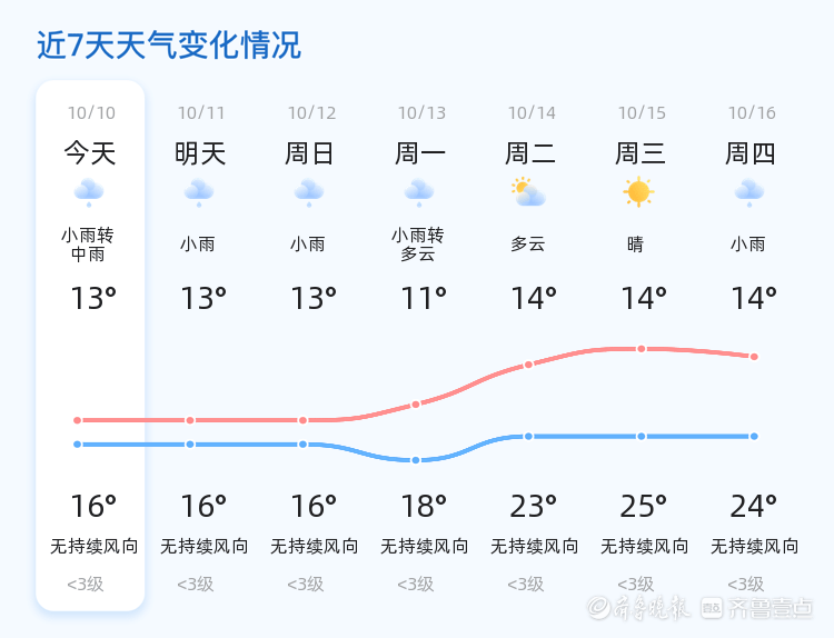 明天济南市的天气将继续以小雨为主,与今日相比,降雨强度略有变化,但整体趋势相似。气温范围仍在13℃至16℃之间,风力依旧较小。市民需提前做好出行规划,避免因降雨影响日常生活。