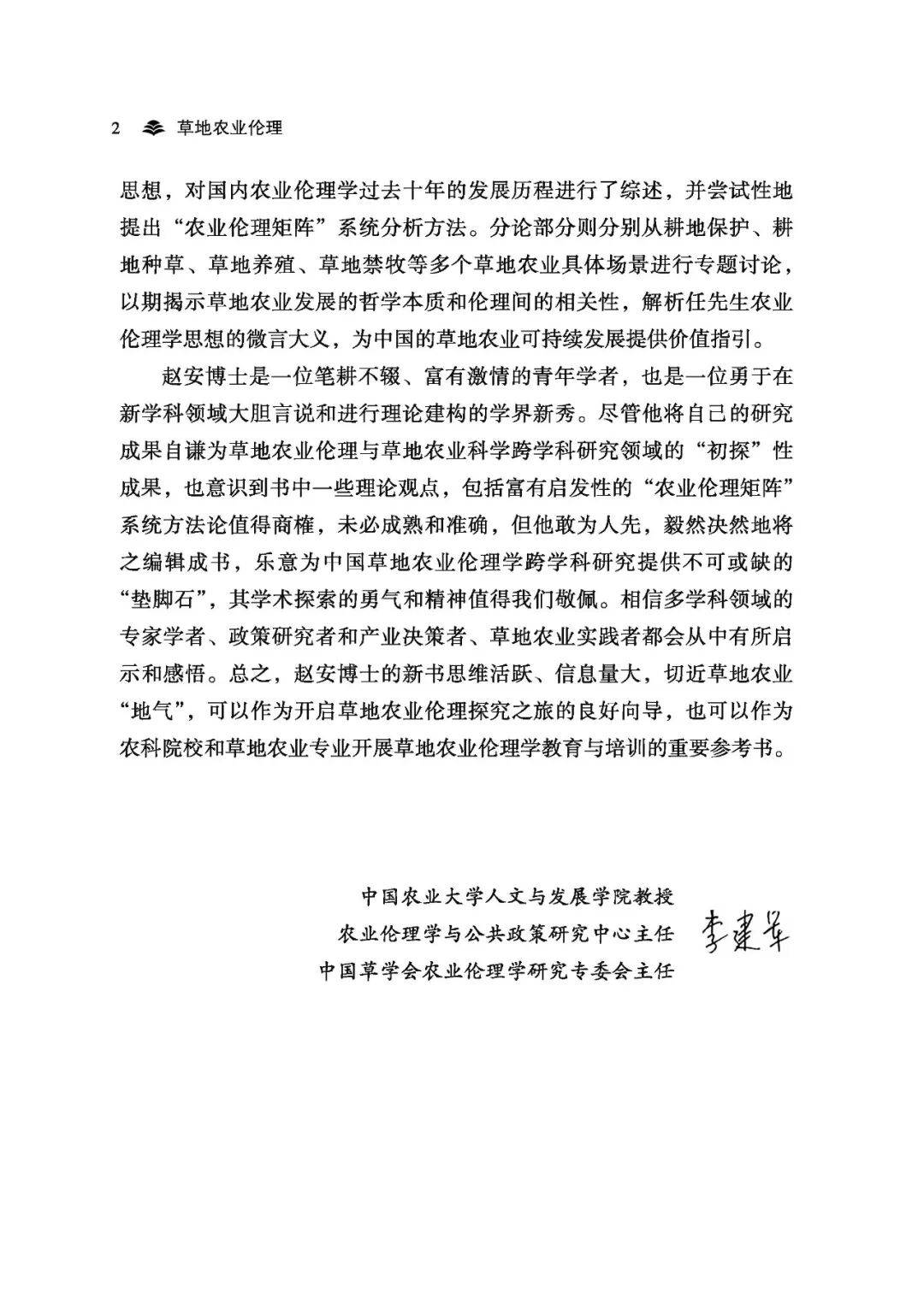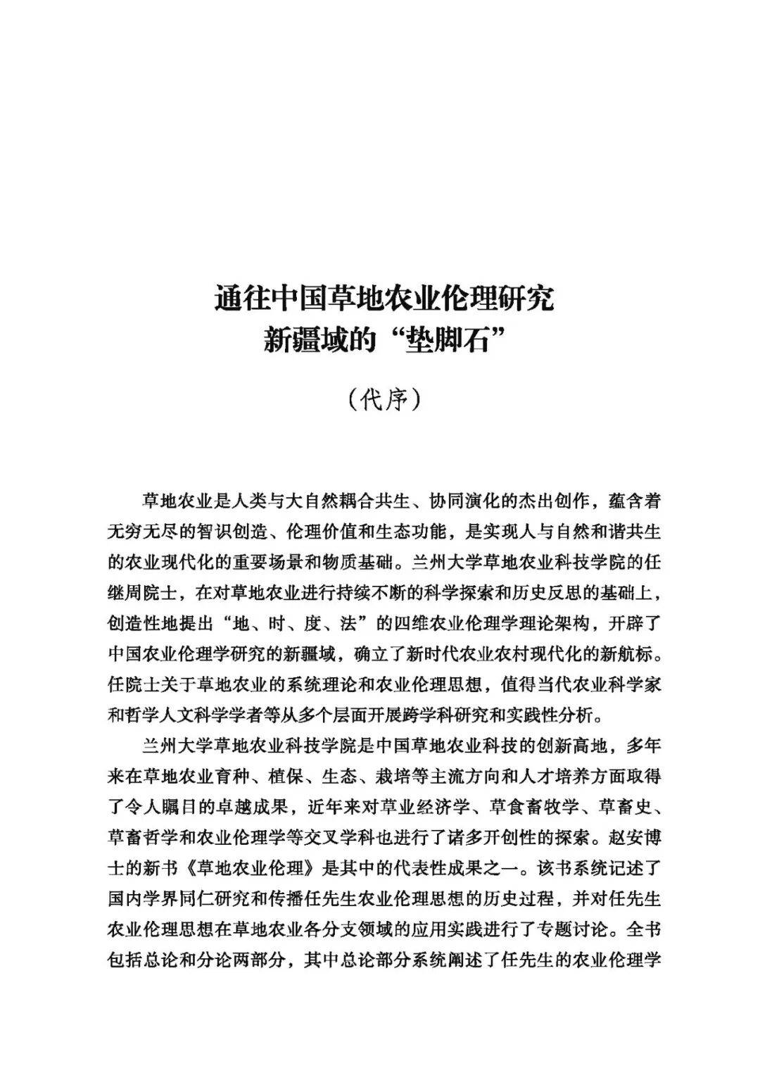 赵安博士的新书《草地农业伦理》思维活跃、信息量大,切近草地农业“地气”,可以作为开启草地农业伦理探究之旅的良好向导。