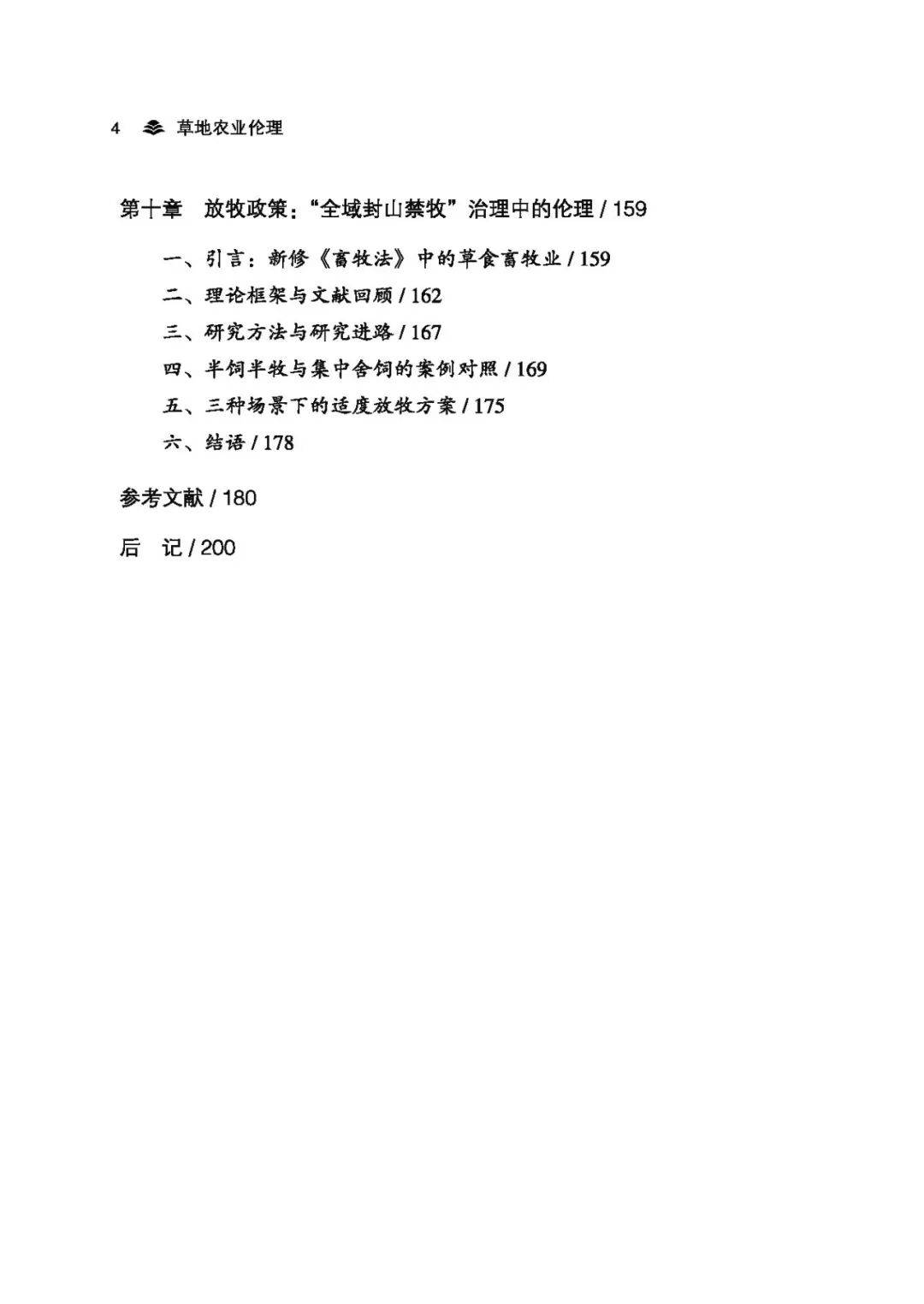 其二,拓展草业科学研究边界,丰富一流学科内涵。兰州大学草学学科是全国排名前列的一流学科,兰州大学农业伦理跨学科团队是国内从事草业相关研究最具综合性的团队。该学科在长期发展中,不仅在草种育种、植物保护、草地生态、草类作物栽培、草食畜牧学等主流研究方向形成显著优势,还逐步拓展出草业经济学、草畜史、草畜哲学等兼具特色与深度的边缘研究领域,构建了多维度、多层次的研究体系。本书的出版进一步将农业伦理这一前沿视角融入草业科学研究范畴,既为草业科学注入了新的学术活力,也通过伦理维度的探索,丰富了学科的内涵边界。
