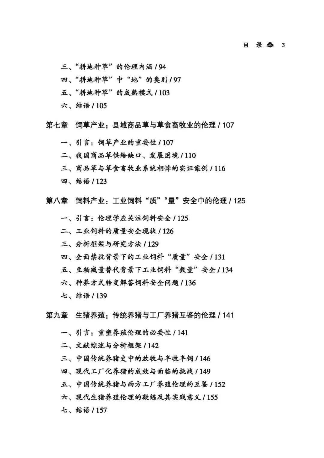 在分论部分,作者聚焦草地农业领域的具体实践场景,选取六个关键议题展开专题讨论,力求为现代农业的伦理缺失问题探索哲学层面的解决方案:一是探讨“藏粮于草”模式对耕地保护的重要意义;二是剖析“耕地种草”过程中涉及的种植伦理问题;三是分析县域饲草产业发展中存在的系统相悖现象;四是研究饲料工业生产中的安全伦理边界;五是挖掘草地农业发展对生猪养殖产业的伦理启示;六是审视草食动物禁牧政策背后的公共政策伦理逻辑。作者始终立足草地农业的独特视角,通过这六个场景的深入剖析,为破解现代农业发展中的伦理困境提供了兼具针对性与前瞻性的思考。