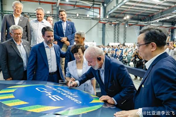 巴西总统卢拉亲自参与下线仪式并成为车主,比亚迪董事长王传福亲自交车。