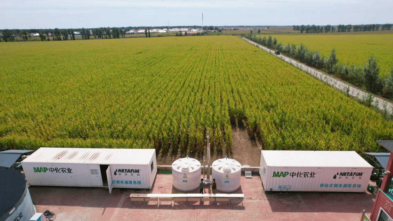 金秋十月,在内蒙古通辽市科尔沁区“千亩控制百亩同步”水肥自动化示范基地——中化现代农业MAP示范农场核心区,千亩玉米田即将开始收割。