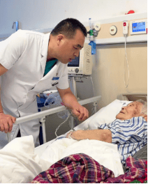 一位103岁的股骨颈骨折老人,是科室近年来接诊的最高龄手术患者。手术风险高、并发症多,术后康复更是考验着医疗团队的细致与专业。黄主任没有犹豫,从术前评估到术后康复,他全程参与、亲自指导,直到老人露出安心的笑容,他才悄悄离开病房。患者家属动情地说:“黄主任总是第一个到,最后一个走。”