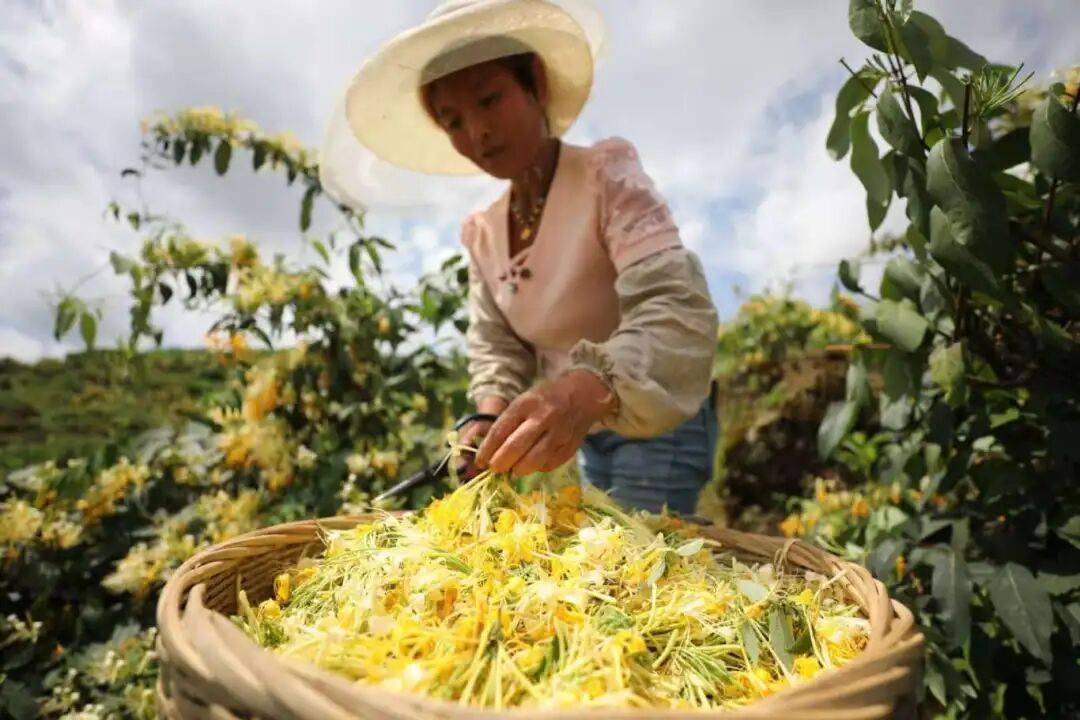 在绥阳,小小山银花也成了群众的“致富花”。花农们夏卖花、冬卖叶,真正实现了“一朵花”带动一方产业,富裕一方百姓。同时,全县引进和培育了山银花加工企业20余家,研发出了山银花“朵花茶”、山银花日化用品等50多个系列产品。山银花种植面积扩增至24.25万亩,综合产值达8.95亿元。