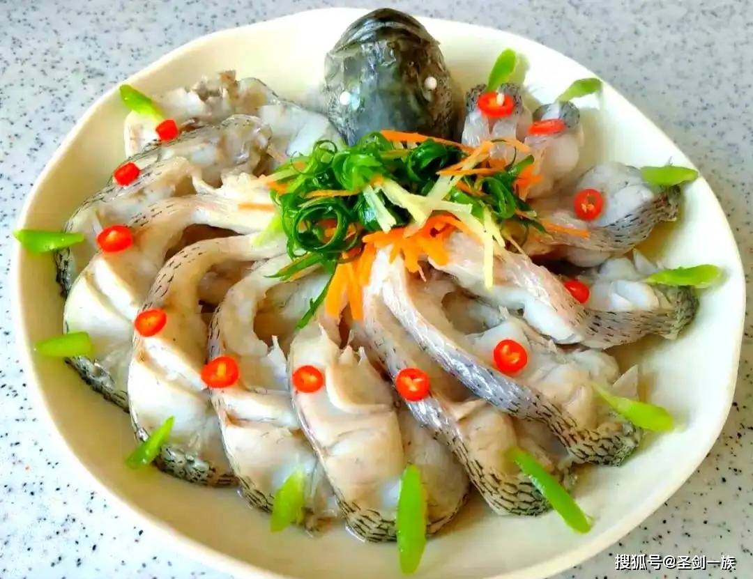 8. 用香菜叶点缀鱼眼,端上桌时轻推鱼尾,“孔雀尾羽”立刻颤动,活灵活现。