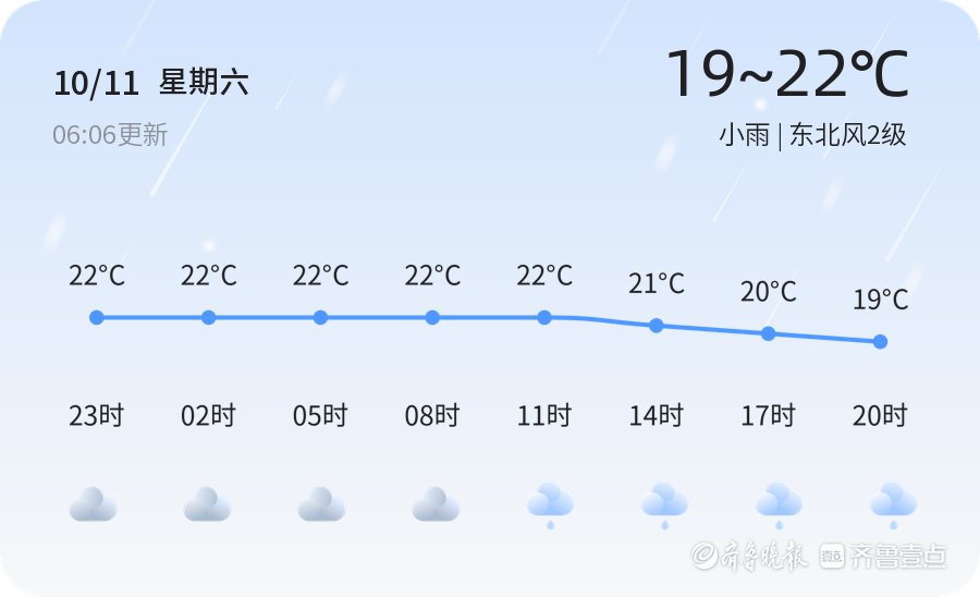 今天是10月11日,星期六,农历八月二十。临沂市今日天气以小雨为主,气温在19℃至22℃之间,东北风2级,空气湿度较高,PM2.5指数为50,空气质量良好。各区天气情况基本一致,均有小雨天气,市民出行需携带雨具,注意防滑。 明日天气与今日相比,小雨持续,气温略有下降,最低气温16℃,最高气温23℃。风力仍为无持续风向,小于3级,市民需继续做好防雨准备。 未来三天,临沂市天气将以小雨为主,局部地区可能出现中雨天气。气温总体呈下降趋势,最低气温15℃,最高气温23℃。市民需及时增添衣物,预防感冒,同时注意行车安全,避免因路面湿滑发生意外。 温馨提示