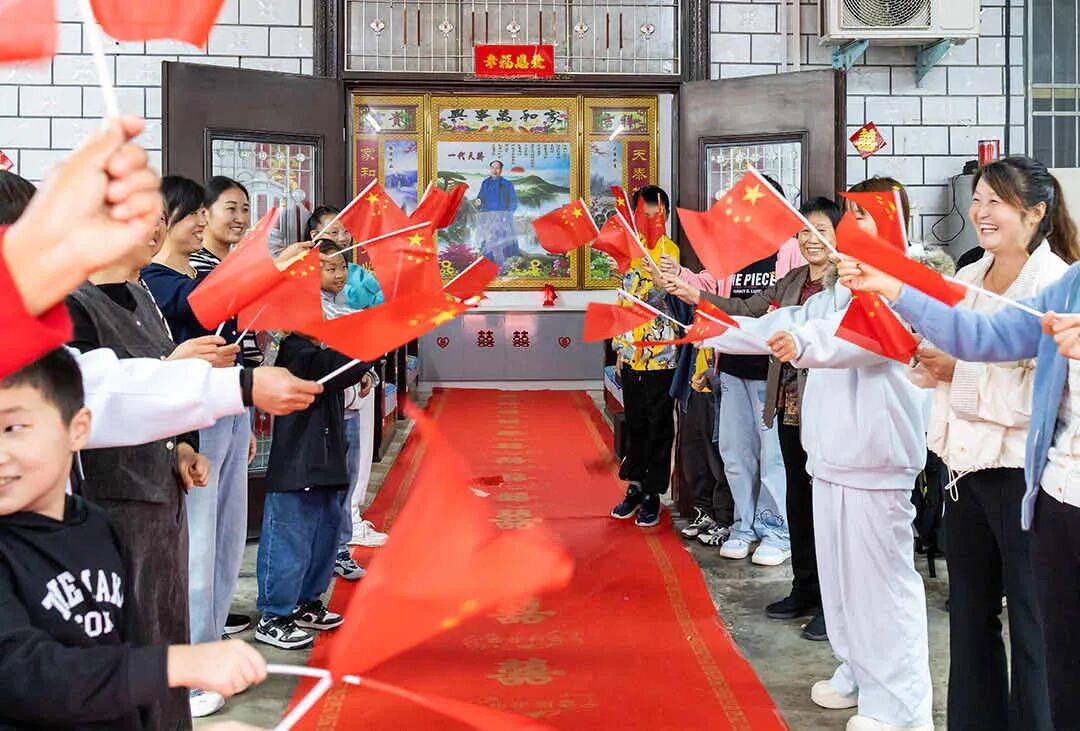 点评赏析:作品以组照的形式,较为全面地记录了国庆佳节里一个家庭的婚礼场景,既有整体流程(中景)的瞬间捕捉,又有过程细节(特写)的精细交代;既有直截了当的明确展示,又有意在言外的含蓄表达,特别是人们举着小红旗欢迎并祝贺一对新人的情景,喜庆吉祥,光彩熠熠。“家是最小国,国是千万家”,选择在国庆节举办婚礼,且现场充满国庆元素与色彩,透显出一种真挚的家国情怀,也诠释了个人、家庭与国家之间相互依存的深厚情感,作品高度契合“国庆一日”征稿主题,充满情感与艺术的张力,在表情达意的同时,也彰显了摄影人关注生活、记录时代的责任担当与价值意义。