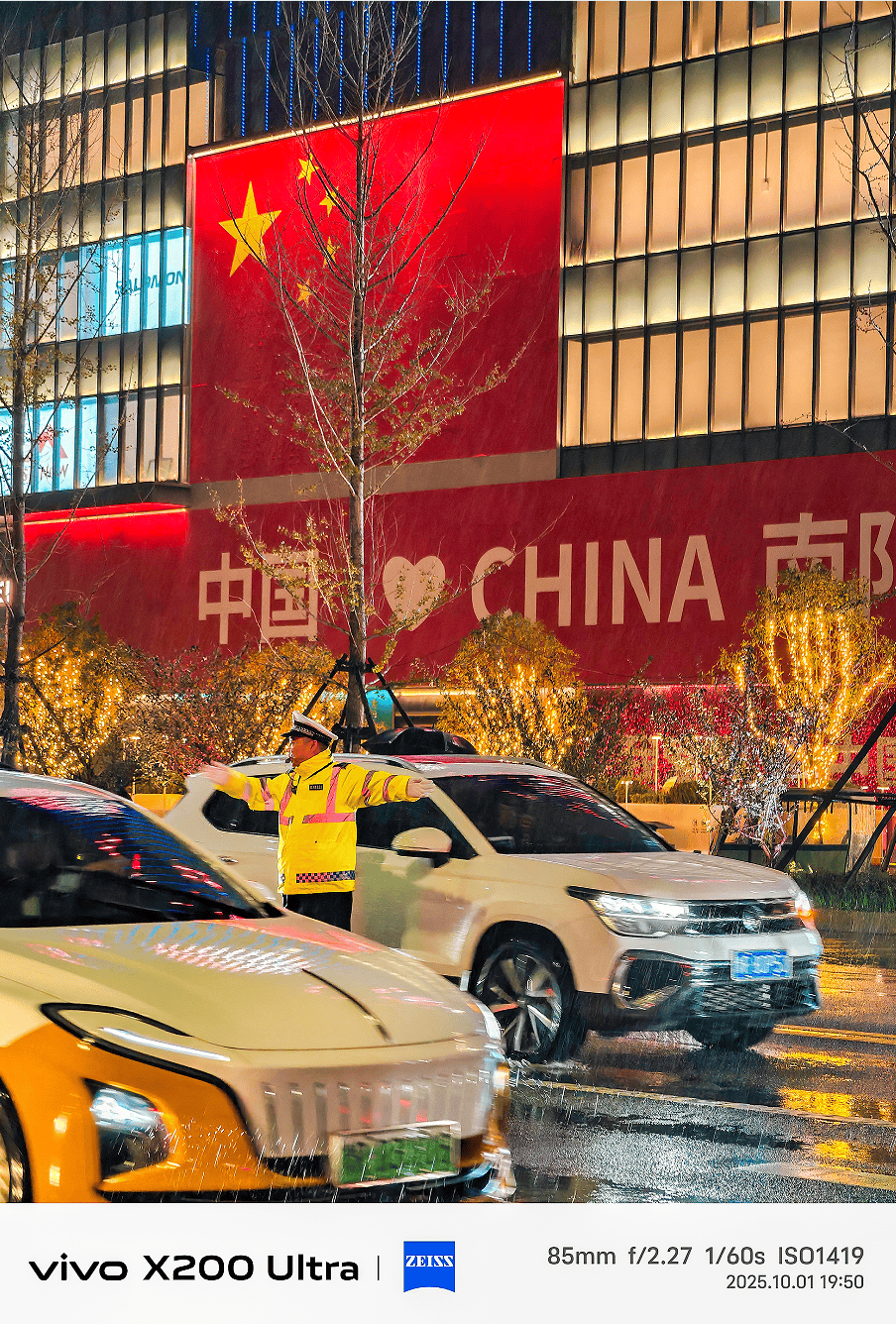 《国庆夜雨中的荧光绿》