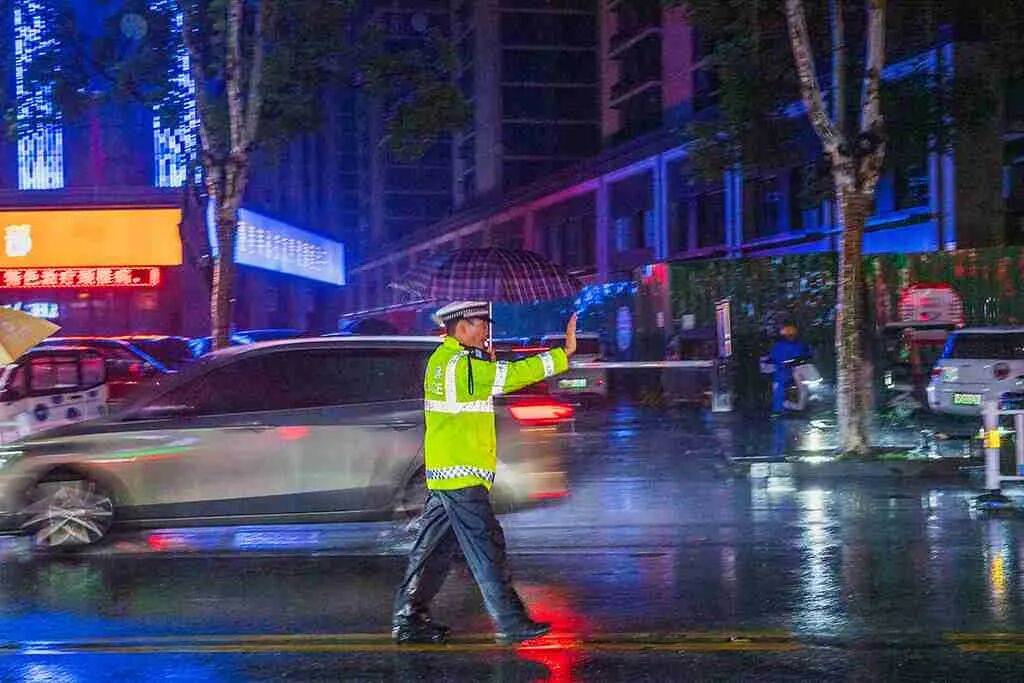 《雨中的坚守》