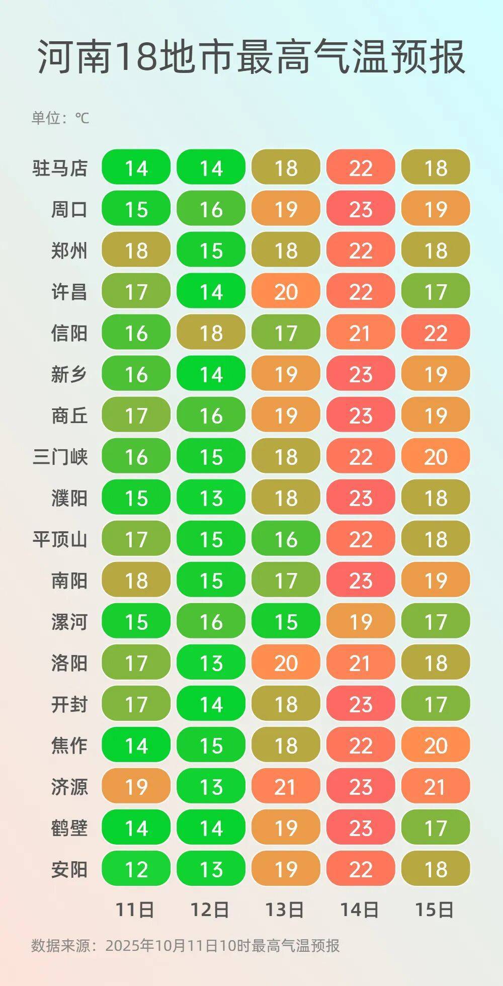 13日随着低槽东移出我省,冷空气影响结束,降水减弱,气温逐渐回暖,14日多地最高气温升至20度以上。然而最低气温回升较慢,昼夜温差拉大,仍要注意保暖!