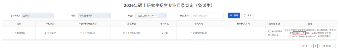 就在最近,某C9大学2026年硕士研究生招生专业目录查询(免试生)中显示,“社会工作硕士专业学位研究生实行项目制培养,收费标准为80000元/生·全程”。而在去年,该专业的学费还是48000元,此次调整幅度显著,上涨了近67%。