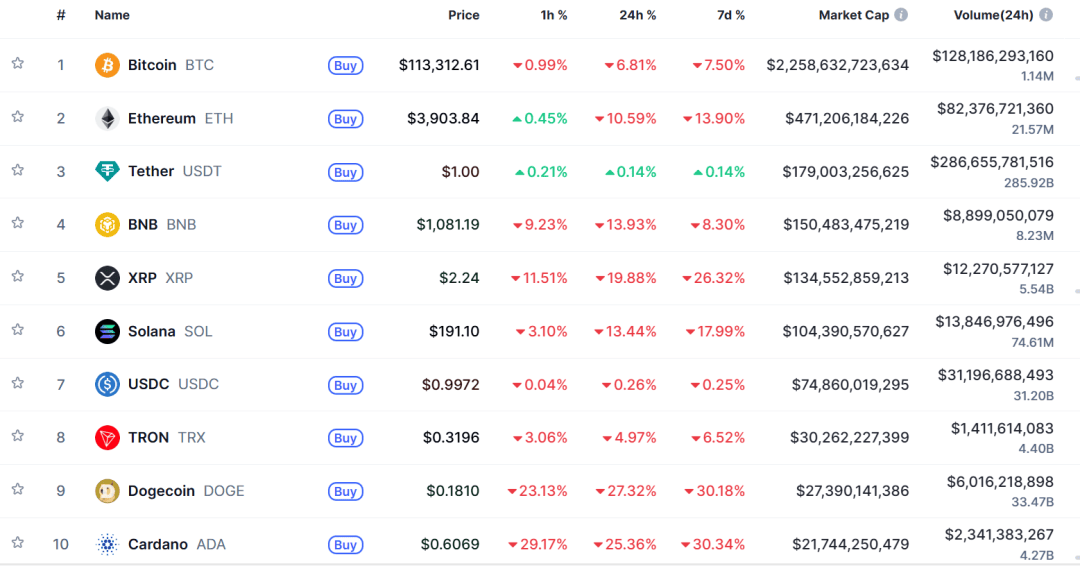 10月11日凌晨,加密货币市场集体暴跌,比特币一度跌超13%,失守11万美元关口,最新报113700美元/枚。