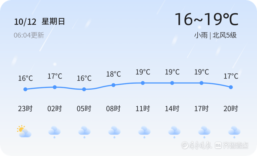 今日是10月12日,星期日,农历八月廿一。日照市今日天气以小雨为主,北风5级,气温在16℃至19℃之间。目前湿度为93%,PM2.5指数为19,空气质量状况为优。阴雨天气加上大风,可能对市民的出行造成一定影响,路面湿滑,建议市民外出时携带雨具,注意交通安全。同时,风力较大,市民出行时需注意保暖,防范大风可能带来的不利影响。