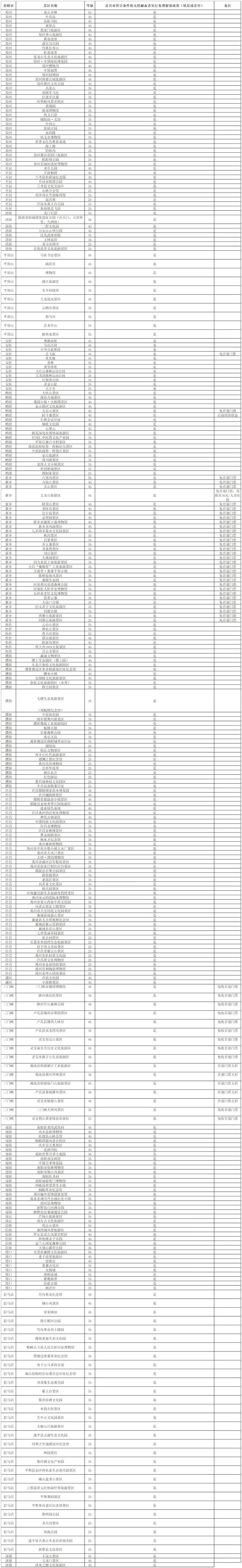 附:无偿献血相关激励政策景区名单