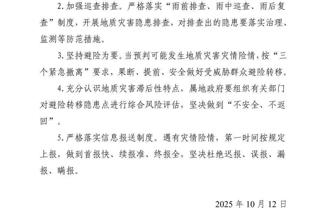 地质灾害气象风险黄色预警