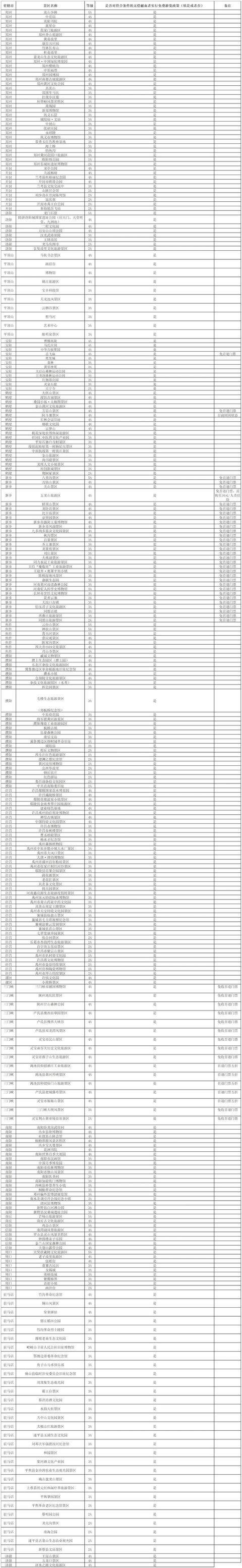附:无偿献血相关激励政策景区名单