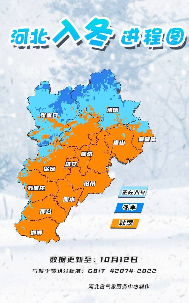截至昨天(12日),我省张家口、承德区域内的部分地区已经进入到了气象意义上的冬天,而北部大部地区和西部山区局地也开始尝试向着冬季迈开脚步,除此之外的省内其他地区均为秋季。