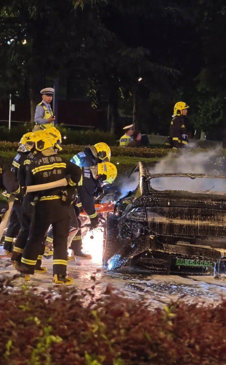 胡先生称,当时有一些路人试图救援,但因火势过大无法靠近,“没一会儿来了多辆消防车,消防人员对汽车进行灭火作业。”