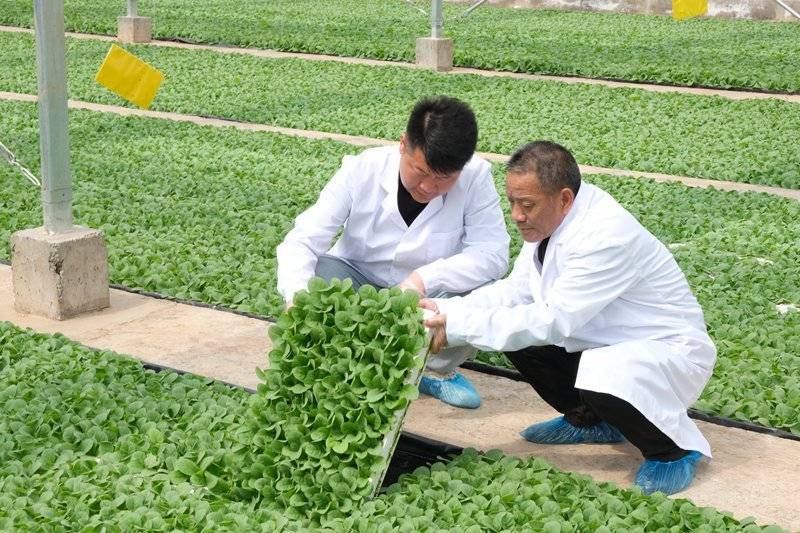 技术人员查看烟苗根系生长状况。陈一璇摄