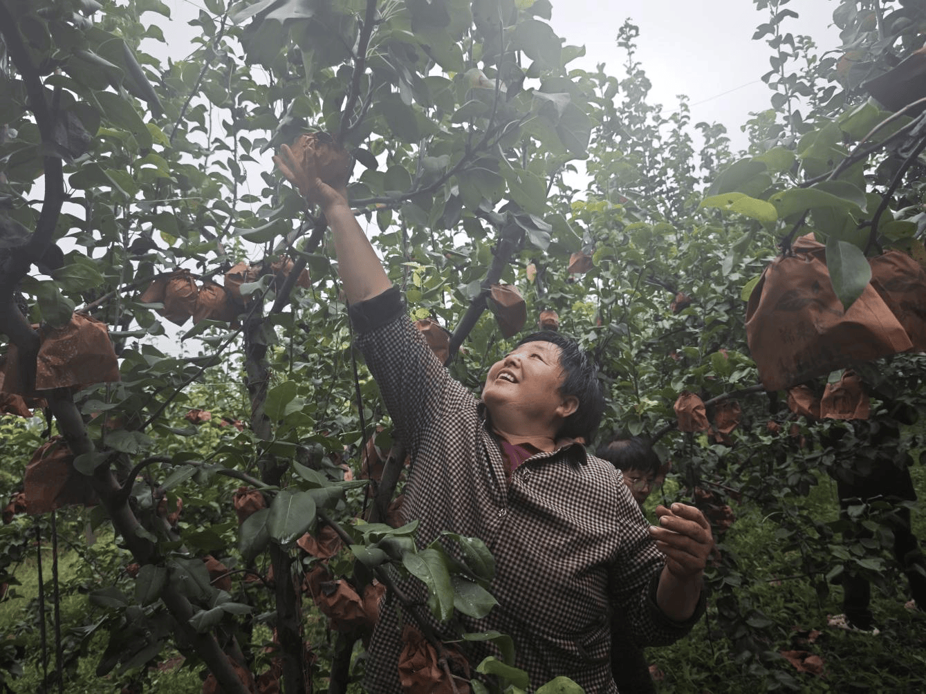 日前,河南省濮阳市台前县清水河乡王庄村的秋月梨种植园内,硕果压枝,香气四溢,绿盈盈的梨树枝上缀满一个个金灿灿的“灯笼”。轻轻剥开它的“外衣”,圆滚滚的秋月梨便露出了“笑脸”。村民们穿梭林间,采摘、搬运、装车,乱中有序,忙碌中充满欢声笑语,一颗颗饱满的秋月梨成为当地村民的“致富果”。