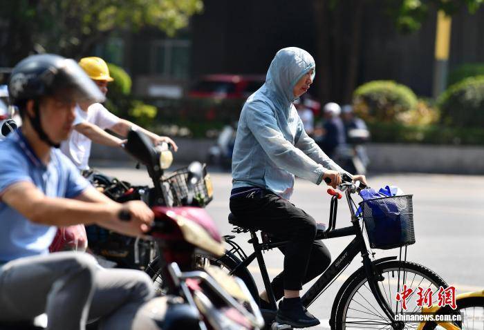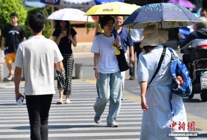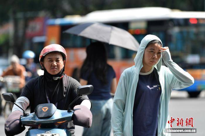 10月13日,福建福州最高气温达35摄氏度。连日来,福州“秋老虎”持续发威,高温不减。图为福州街头出行的民众。中新社记者 张斌 摄