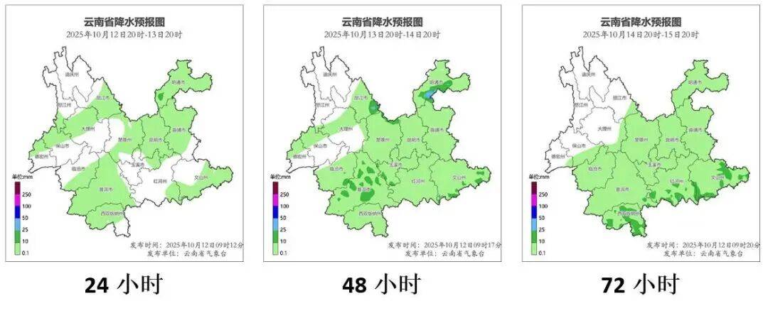2025年10月12日20:00~10月13日20:00,普洱市北部和西部、西南部,怒江州北部,临沧市东部发生滑坡泥石流的风险较高。