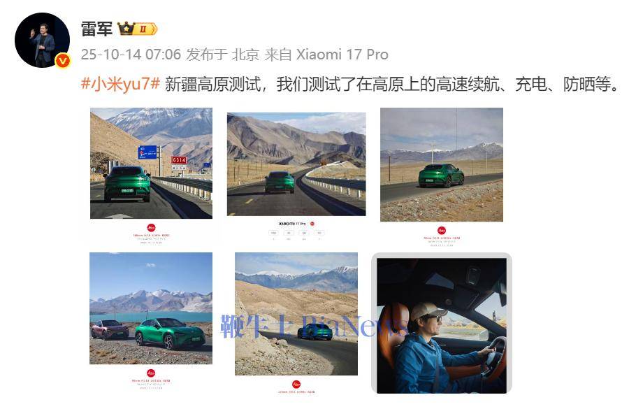 今日,雷军正常更新微博介绍了小米YU7新疆高原测试情况,并未提及小米SU7成都事故。