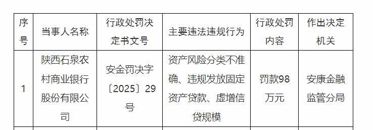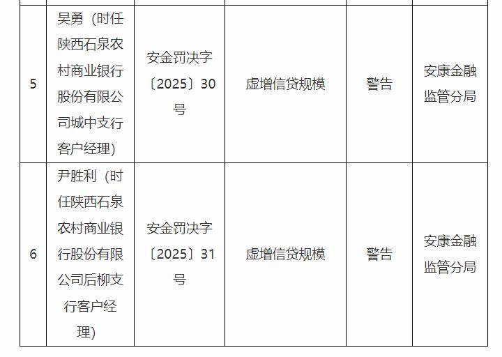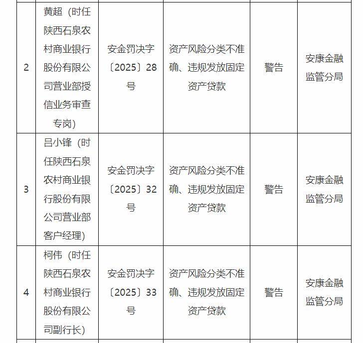 近日,国家金融监督管理总局安康监管分局密集发布了多份行政处罚决定书(安金罚决字〔2025〕28 - 33 号),剑指陕西石泉农村商业银行股份有限公司及其相关责任人的一系列违规行为。