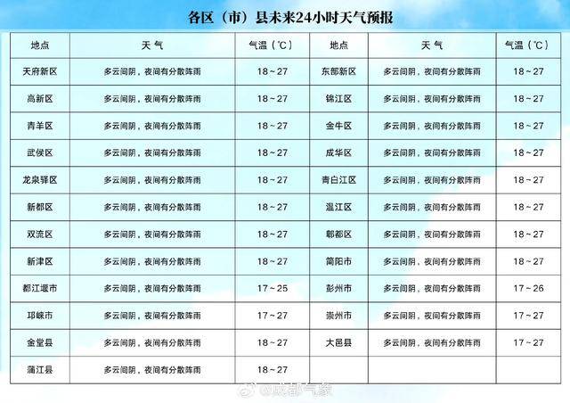 预计未来三天,我市以阴天间多云为主,雨滴随机掉落。今晚有分散阵雨,明天白天阳光在线。