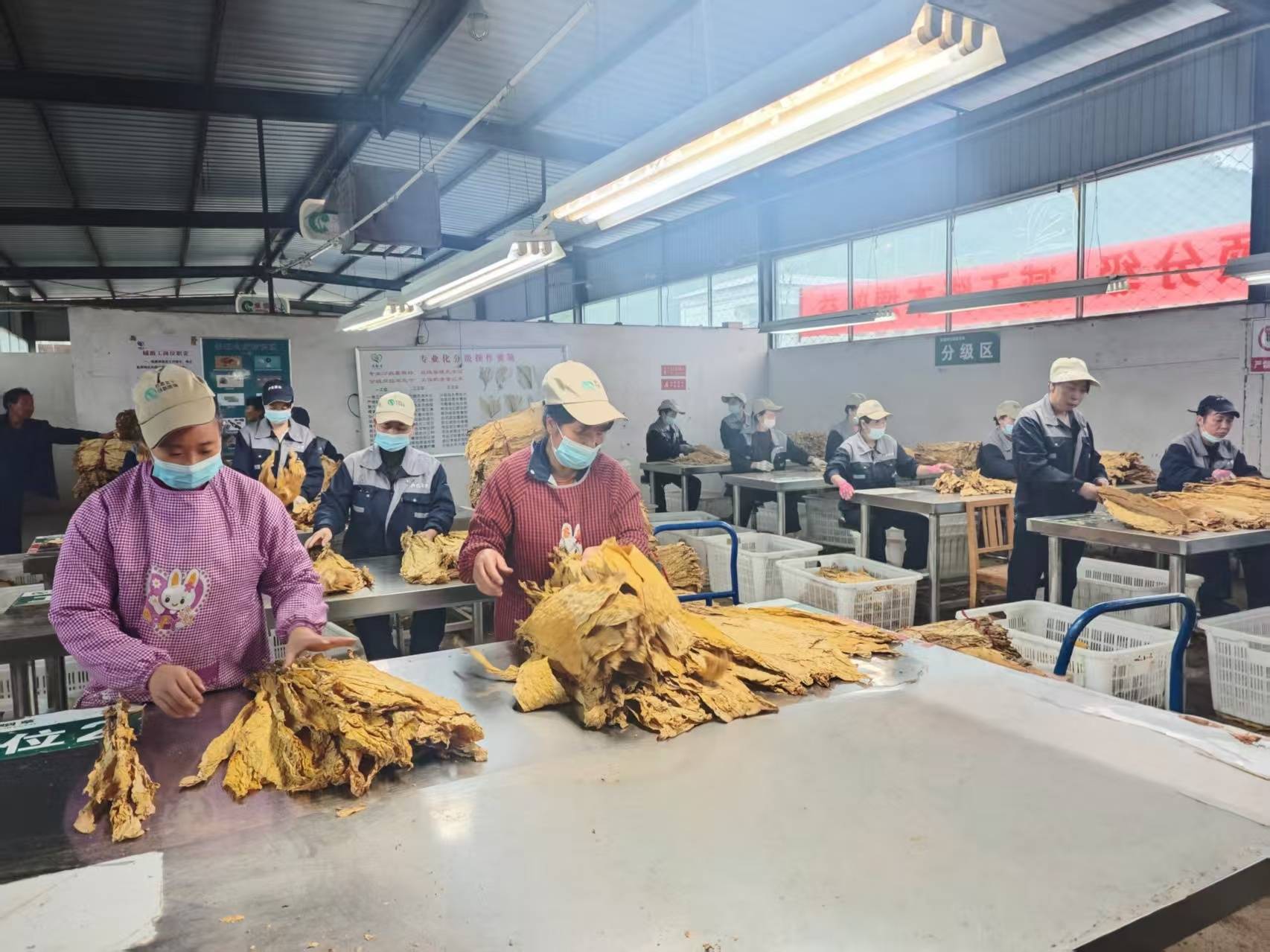 图为烟站分级现场。张茜摄