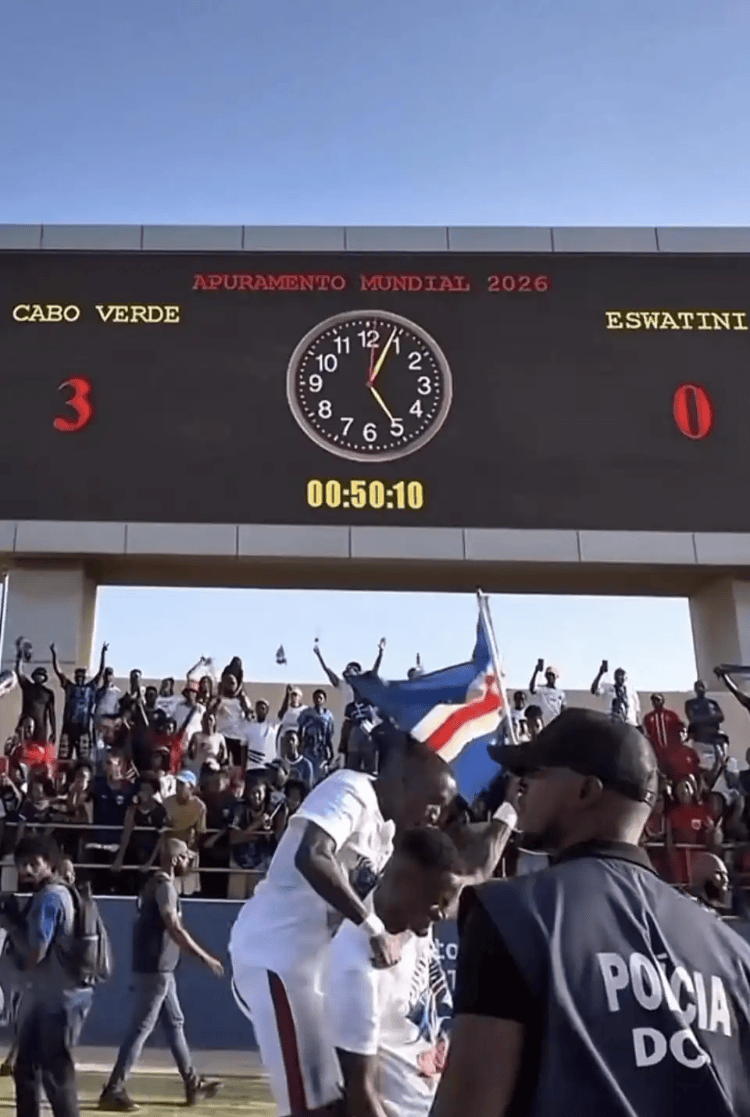 队史首次晋级世界杯后,佛得角球迷冲进球场庆祝。极目新闻