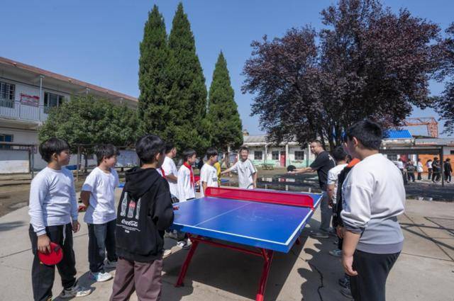 随后,河南省体育中学的专业教练带来两节特色体育课。乒乓球课上,教练耐心纠正孩子们的握拍姿势,示范发球技巧;篮球课上,教练从基础运球、传球教起,组织孩子们分组练习。尽管汗水浸湿衣衫,孩子们的笑容与热情却愈发灿烂。