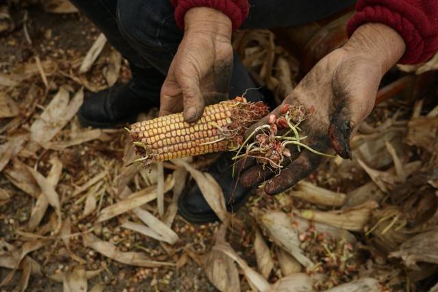 许多当地庄稼人陷入两难困境——不收,在地里淋雨;收回去,无处晾。一旦发芽、发霉,就卖不出好价钱。