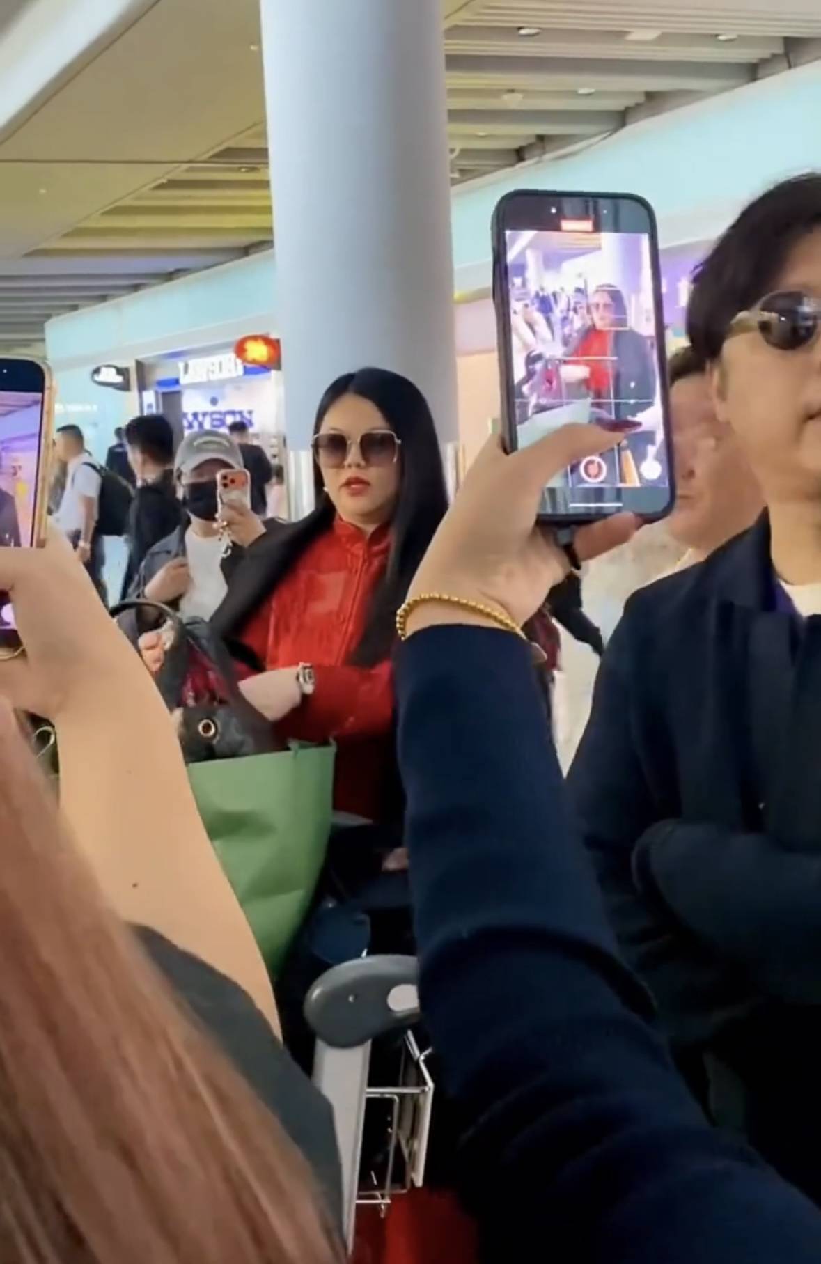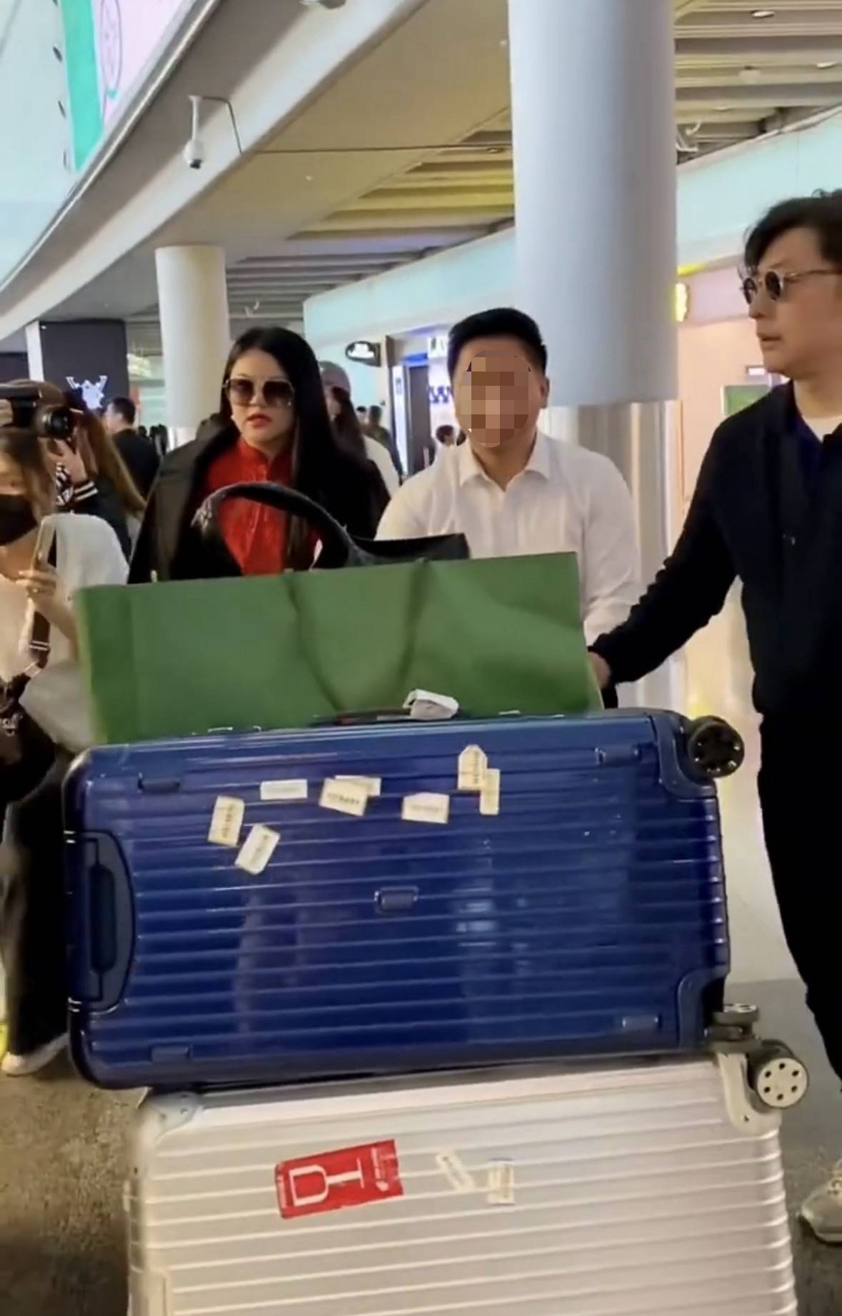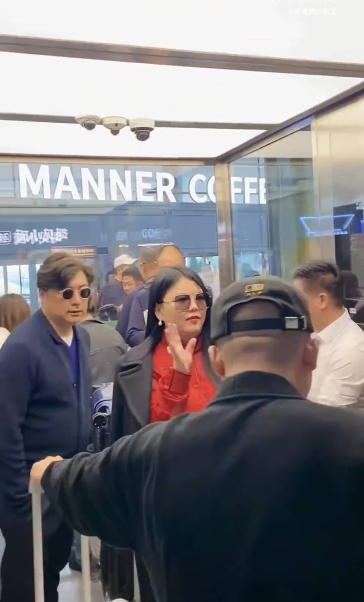 搜狐娱乐讯 10月14日,李湘和王岳伦回国的视频流出。图中,李湘穿大红色套装披着黑色大衣,王岳伦打扮休闲。