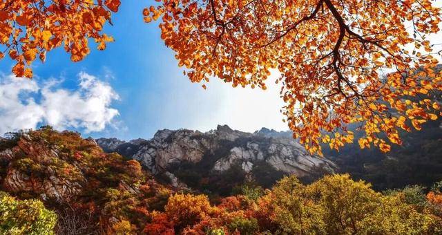 “看万山红遍,层林尽染”。每年寒露过后,以黄栌为主的大片红叶林带开始绽放异彩。漫步山间,火红的林叶与古老岩石相互映衬,营造出独具韵味的赏秋体验。