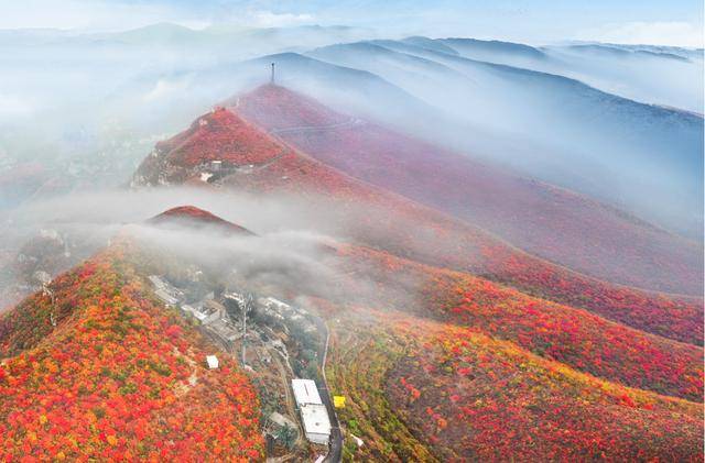 “红叶绿中游,彩练当空舞”是这里的真实写照。站在南天门远眺,黄、红、绿交织漫山,勾勒出绝美的天际线。连绵的红叶如同大地的红毯,一直延伸到视线尽头。