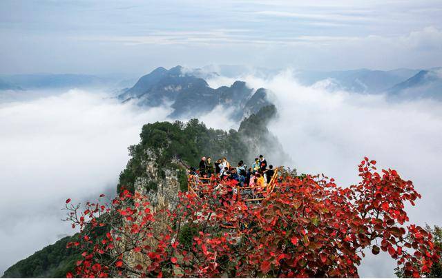 雨打青松青,霜染枫叶红。神农山上的红叶如同一团团燃烧的火焰,热烈而奔放。远远望去,山峦仿佛披上一层五彩锦缎。最美的是雨后云海翻涌,当热烈的红叶遇上飘逸的云海,视觉效果直接拉满,是时候邀三五好友,共赴这场自然奇观。