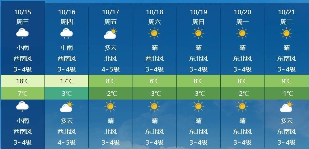 同时,未来五天,全区大部气温普降4~8℃,西部偏东、中部大部地区气温下降8~12℃,局地气温累计下降14℃以上。预计,今天,呼和浩特市及以西地区最高气温还能维持在17、18℃上下,而中东部大部地区最高气温将跌至10℃及以下;明天,呼和浩特市及以西地区最高气温下降到15℃左右,中东部气温进一步下滑;17日之后,全区大部地区最高气温均跌至个位数,最低气温跌到冰点以下,部分地区最低气温下降到-5℃及以下。像首府呼和浩特市,今日最高气温可达18℃,最低气温7℃,17日最高气温8度,最低气温-2℃,18日最高气温仅6℃,最低气温-3℃,寒意加深。同时,17日后全区大部地区有霜冻或轻霜冻,中部偏东、东北部地区有冰冻,请注意防范。