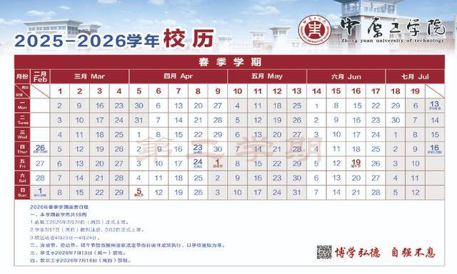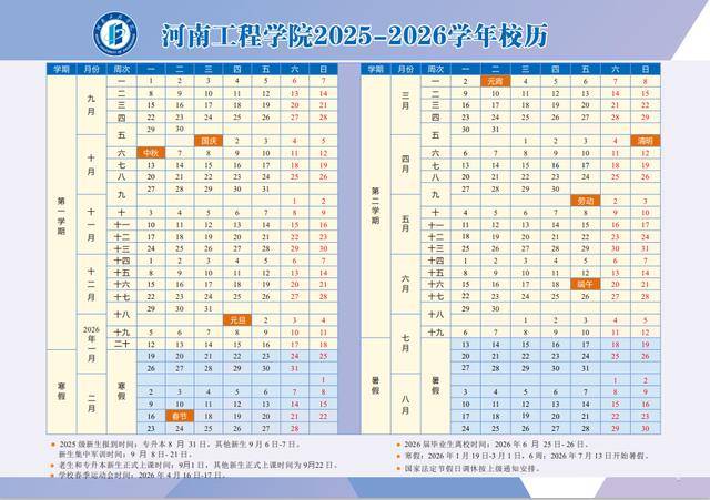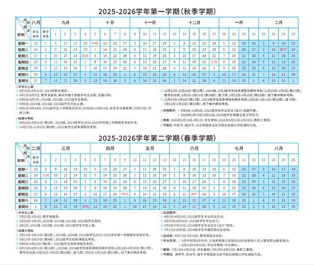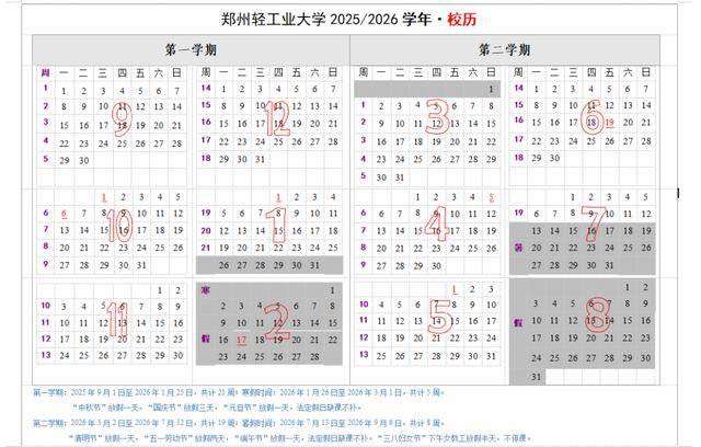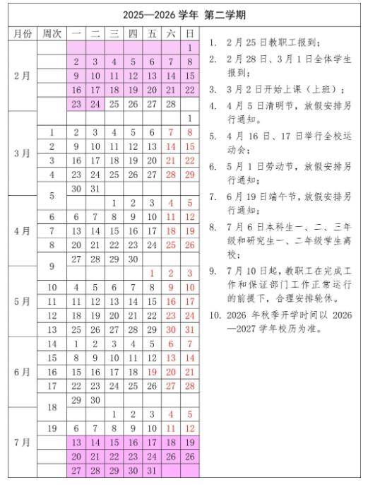 注:2026年节假日放假调休时间根据国务院办公厅节假日放假调休惯例安排,如有变化学校另行通知。