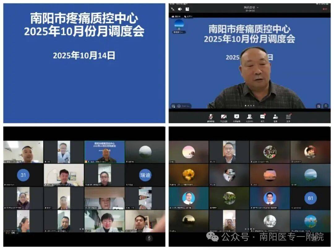 2025年10月14日晚,南阳市疼痛质控中心召开10月份线上工作调度会。作为中心挂靠单位,南阳医专一附院牵头组织了本次会议。会议由中心主任徐国亭主持,省、市级专家及全市各级医疗机构疼痛科主任、业务骨干、质控员等50余人参会,共同围绕疼痛医疗质量提升与学科发展展开深入交流。