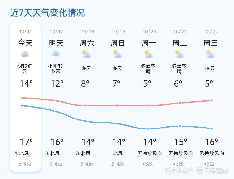 明天,10月17日,东营市天气将由小雨转为多云,气温略有下降,预计在12℃至16℃之间,东北风3-4级。与今天相比,降雨天气可能对市民出行造成一定影响,建议提前规划行程,注意交通安全。
