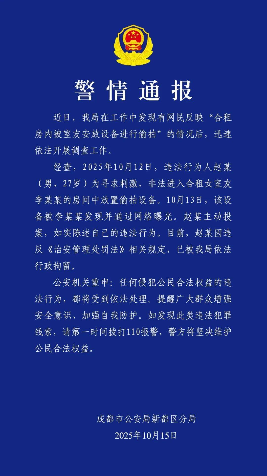 10月15日,四川省成都市公安局新都区分局发布一则警情通报: