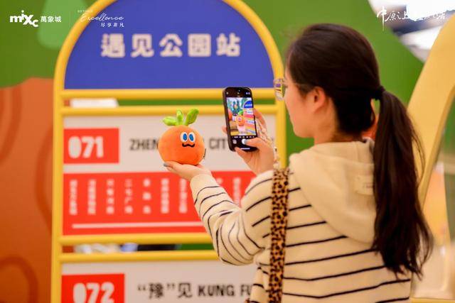 在“郑好YU见”打卡区,可爱呆萌的卜卜现身象征丰收与希望的金黄麦浪之间,望着来往行人;「MOJO FAMILY热血巴士」旁边的车牌上写满了郑州的鲜活标签——“郑东万象城”“河南博物馆”“德化街夜市”,还有“羊肉烩面”“胡辣汤”“烧鸡”“烙馍卷菜”等地道美食,串联起郑州文化底蕴与味觉记忆。