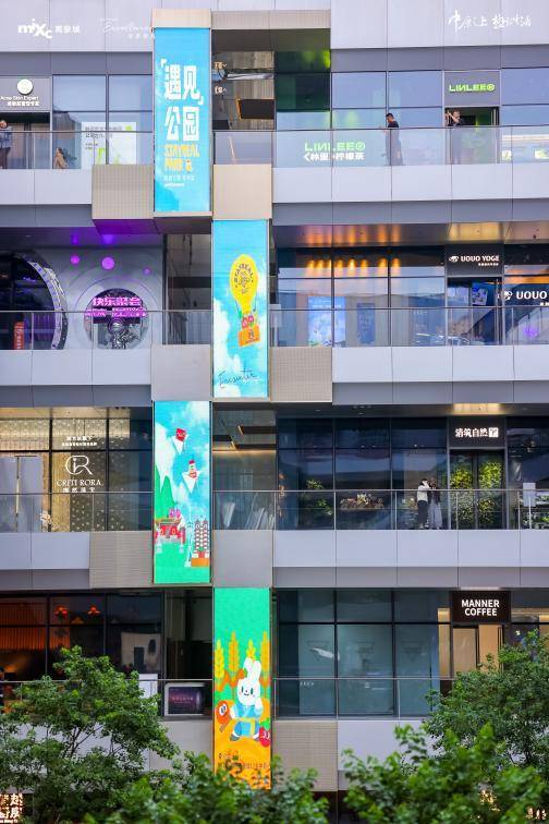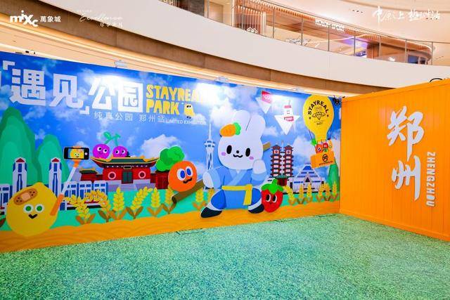 与此同时,商场室内外大屏循环播放活动画面,并于二号门处打造巨型墙贴强化打卡氛围,为来自各地的「公园er」营造沉浸式的“逛公园”圣地,让每一次相遇,都“郑好”。