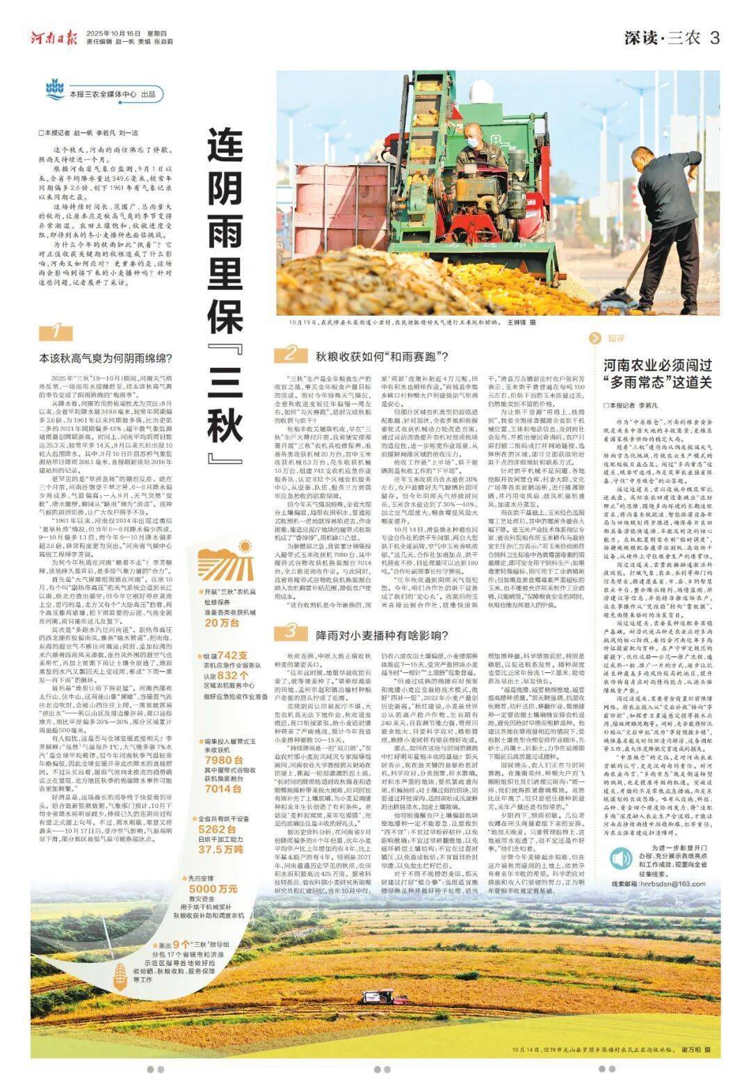 为什么今年的秋雨如此“执着”?它对正值收获关键期的秋粮造成了什么影响,河南又如何应对?更重要的是,这场雨会影响到接下来的小麦播种吗?